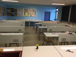 La salle de classe a été entièrement rénovée : remplacement des luminaires actuels par des LED, rénovation du système électrique avec changement de l’armoire électrique dont la puissance doit supporter les nouveaux équipements, rénovation complète avec un revêtement adapté aux travaux pratiques en et rénovation de la peinture écaillée de la salle. Ces travaux de rénovation ont été réalisés par les agents de la Région.